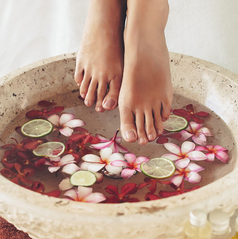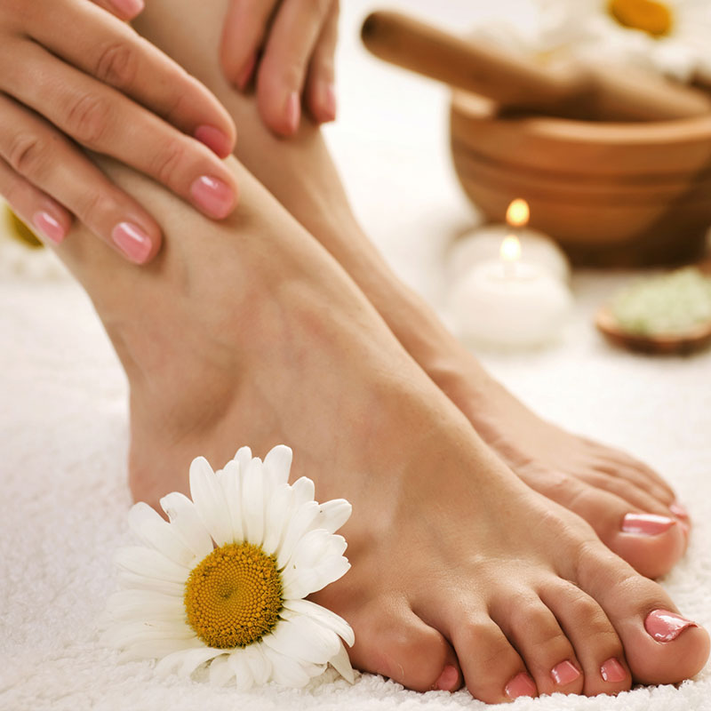 Nails Shaping, revitalizing cuticle care & moistunzing, intensive callus treatment, exclusive exfoliating sugar scrub, hot stone therapeutic and butter cream massage, serum, nourishing mask with hot towel wraps, paraffin treatment & polish. (15 mins massage)